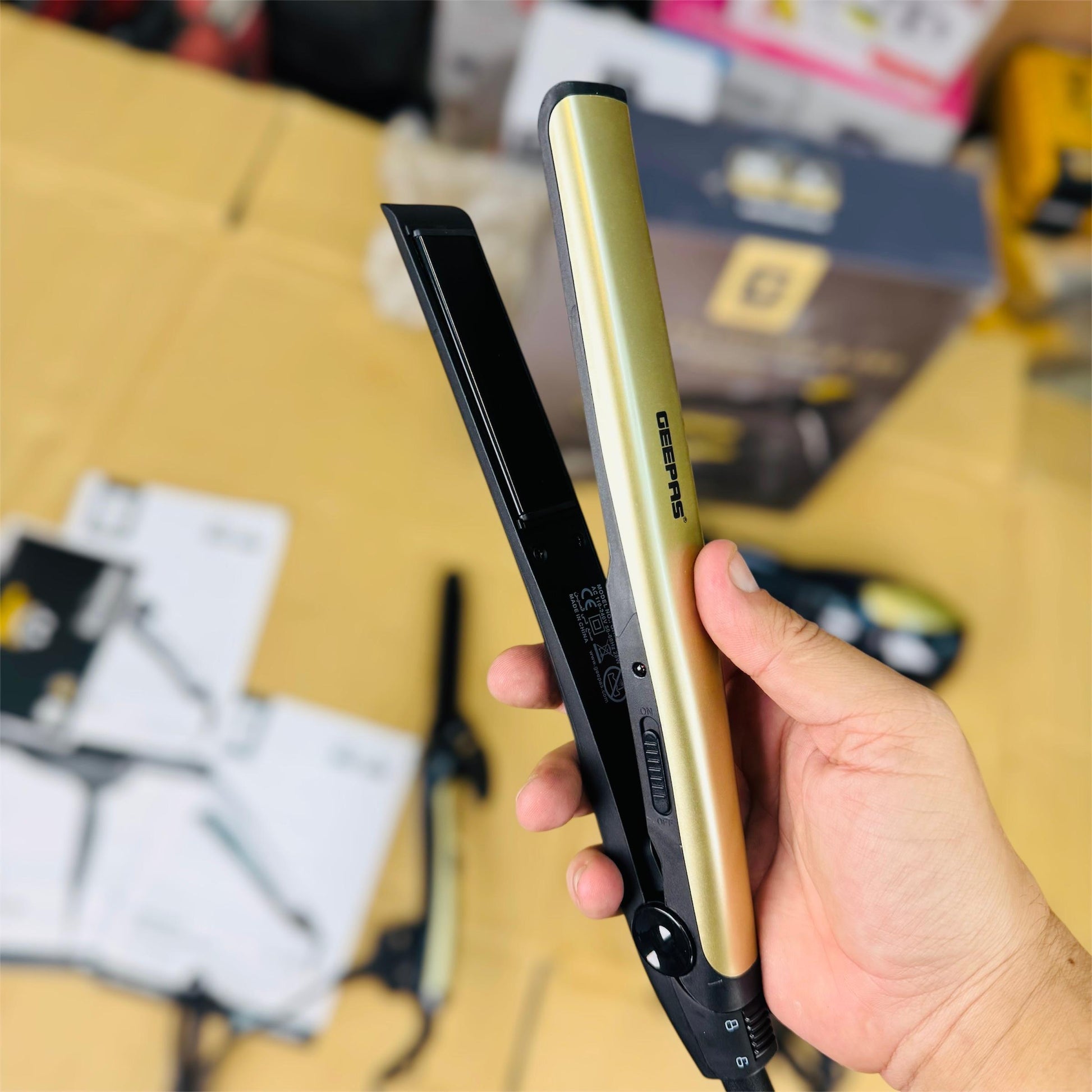 Ceramic plates reduce frizz and protect hair from heat damage.