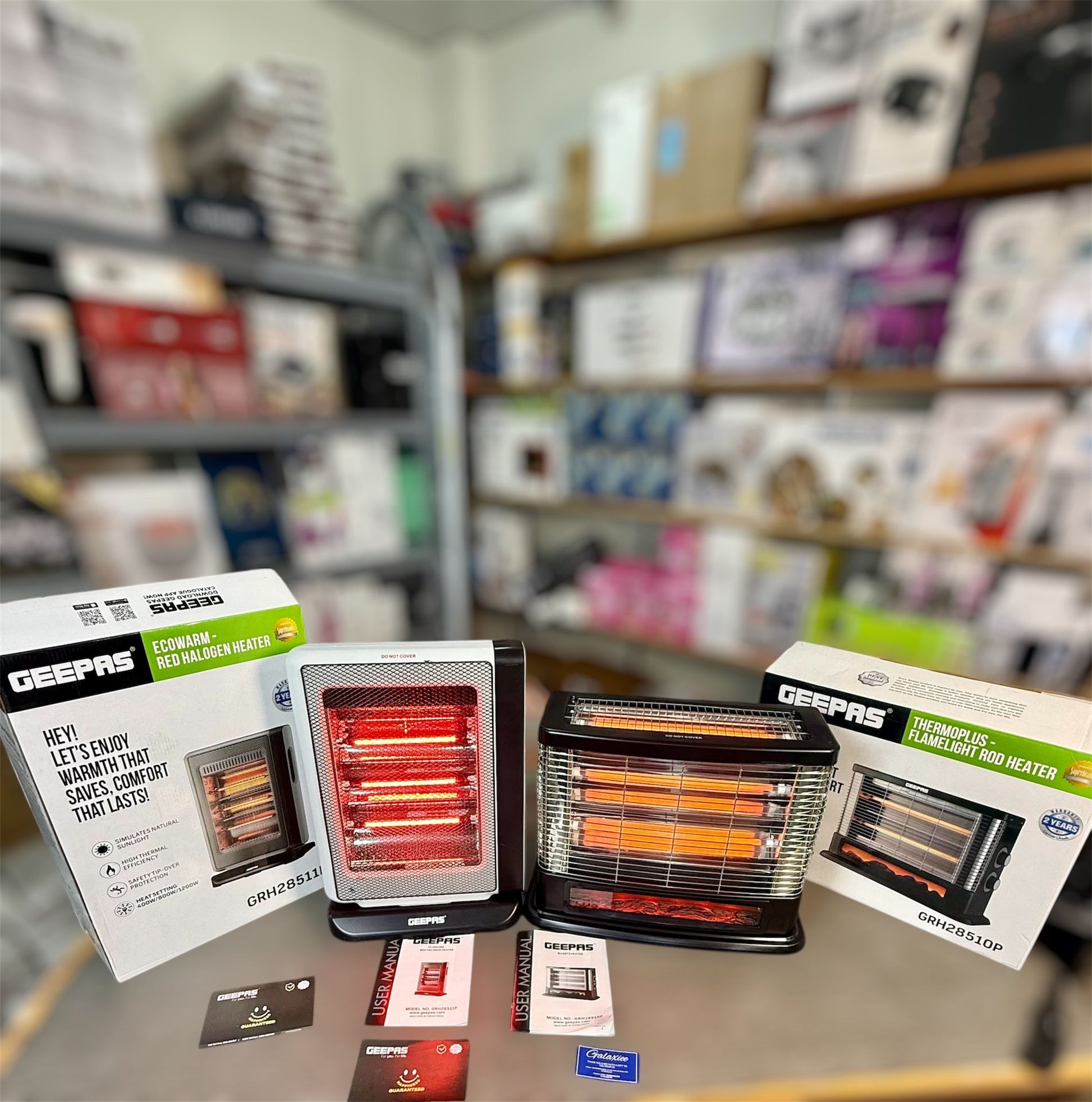 Geepas Ecowarm Red Halogen Heater and Geepas Flame Rod Heater GRH28510P – 1500W Fireplace-Style Room Heater