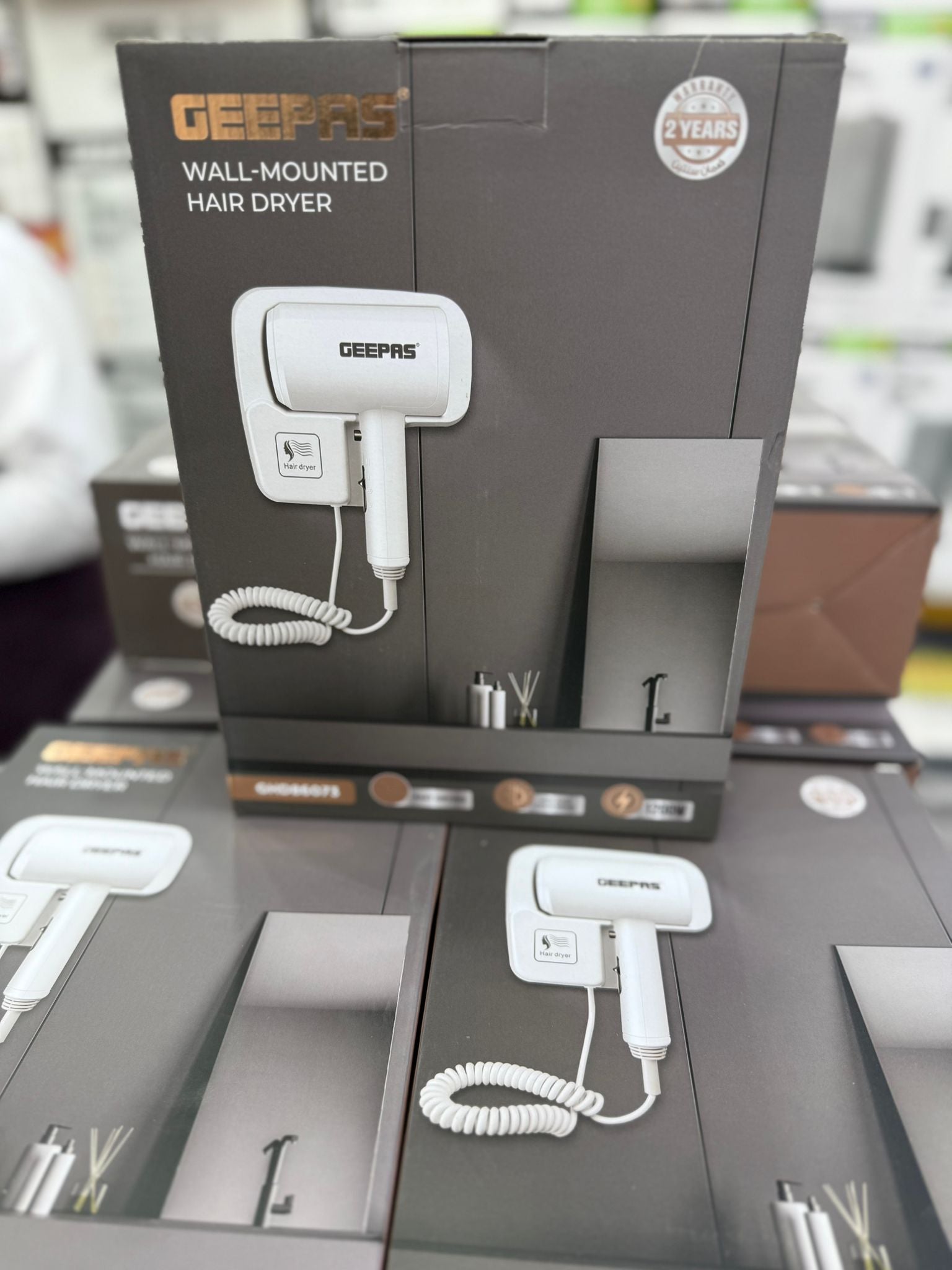 Geepas GHD86073 Wall-Mounted Hair Dryer – 1200W Powerful Motor, Cool Shot Function, Constant Temperature, Quiet Operation