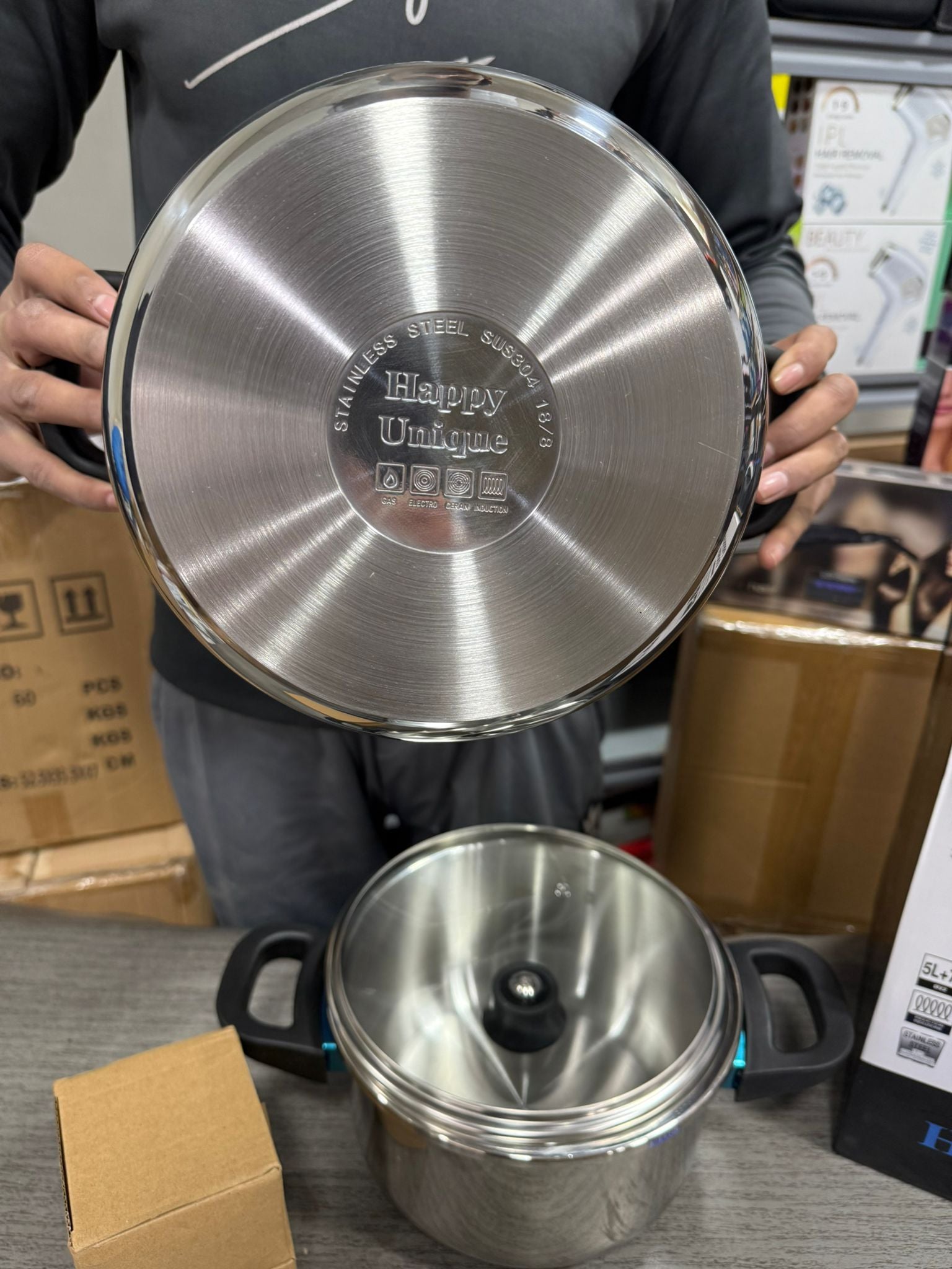 Happy Unique Premium Stainless Steel Pressure Cooker Set – 5L & 7L with Steamer (Induction Compatible)