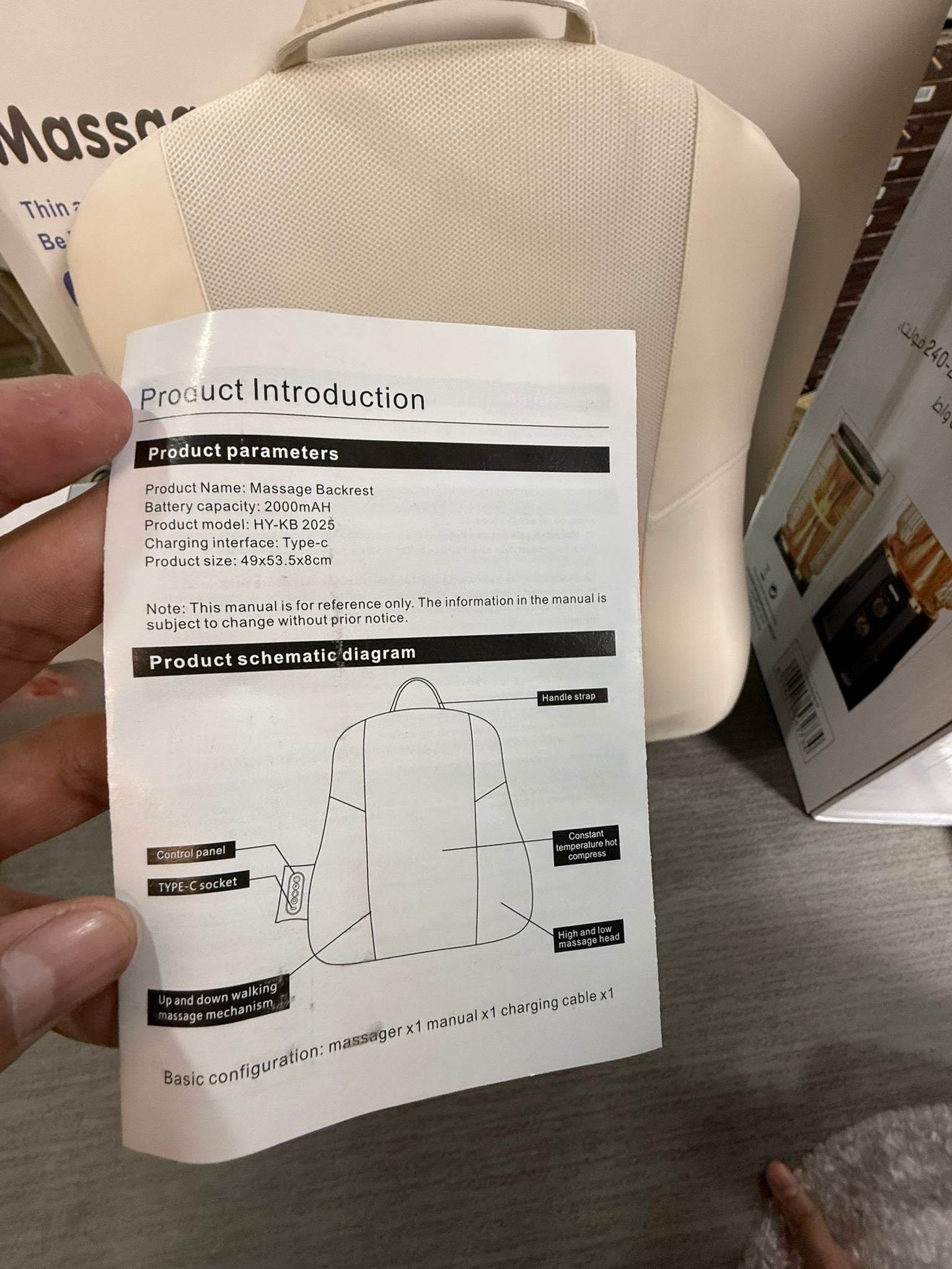 Rechargeable Massage Backrest – 2000mAh Battery | Forward & Reverse Massage + Heat Compress