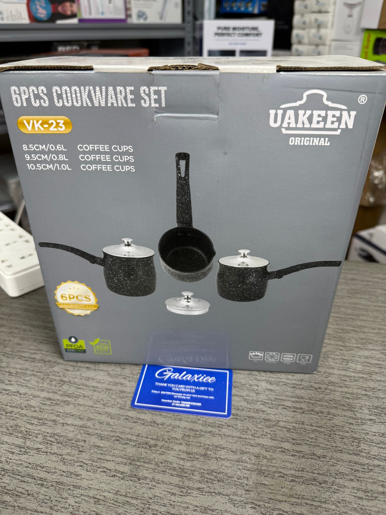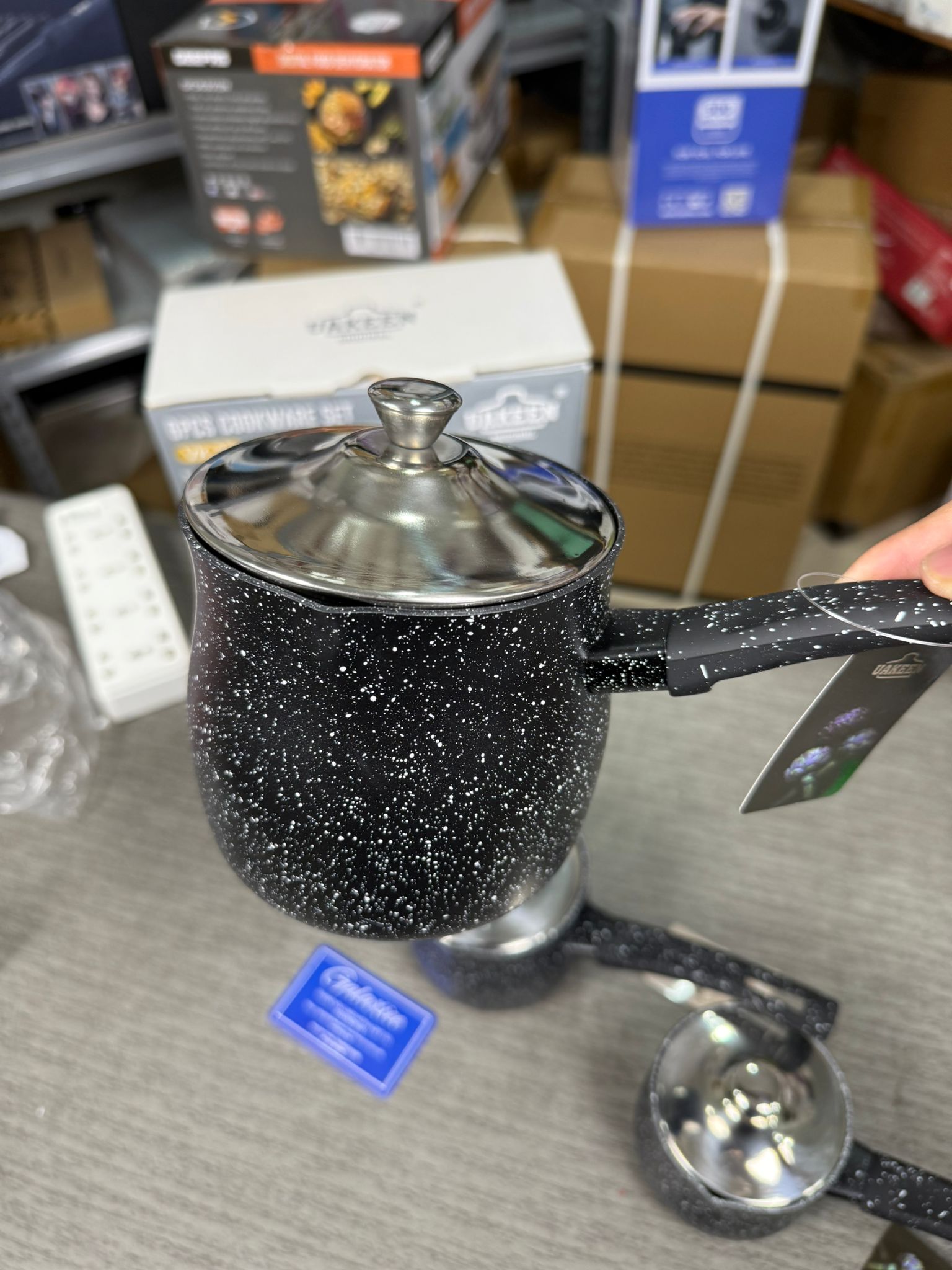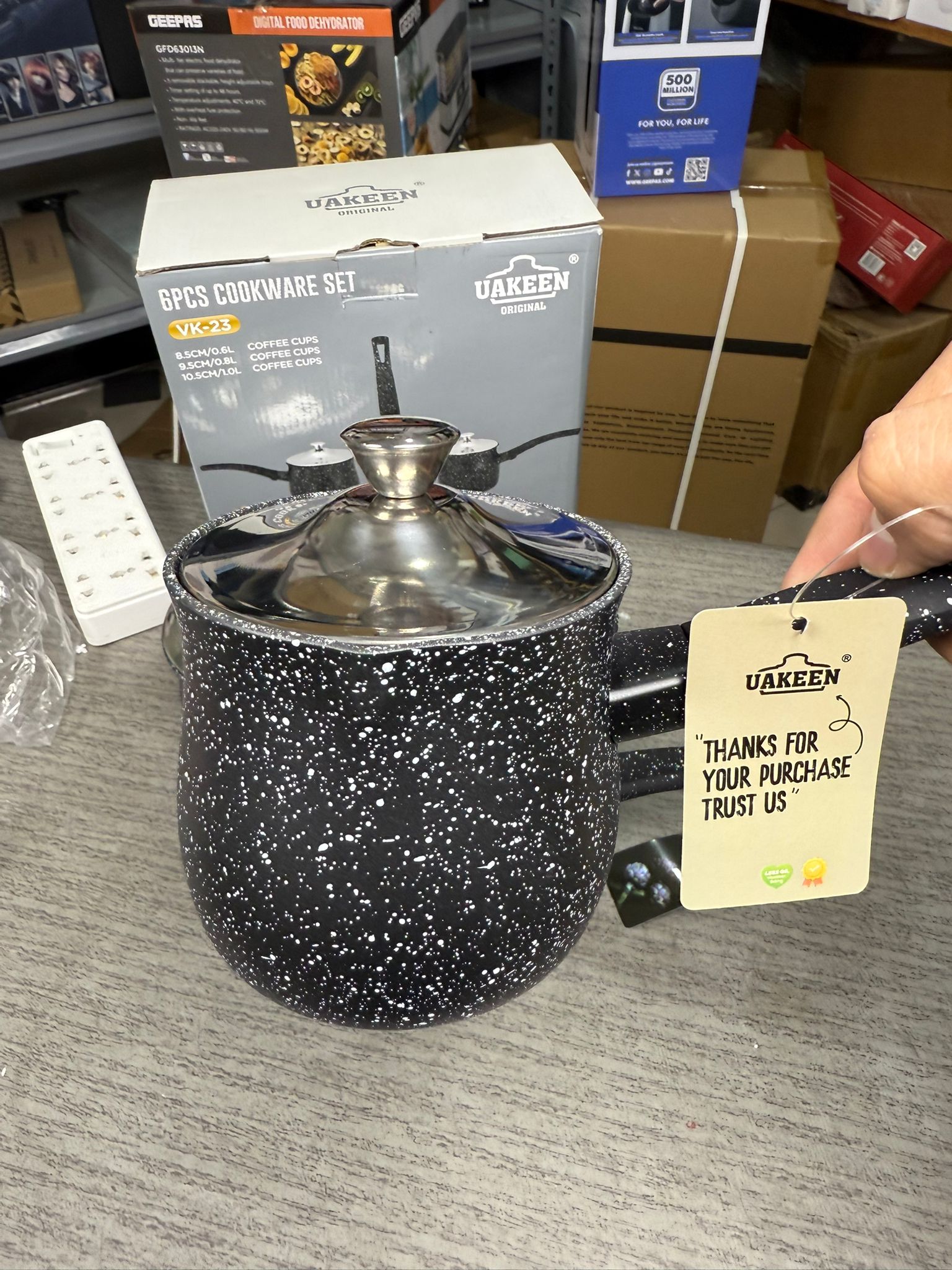 Uakeen 6-Piece Granite Cookware Set – Premium Aluminum Coffee & Milk Pots with Glass Lids