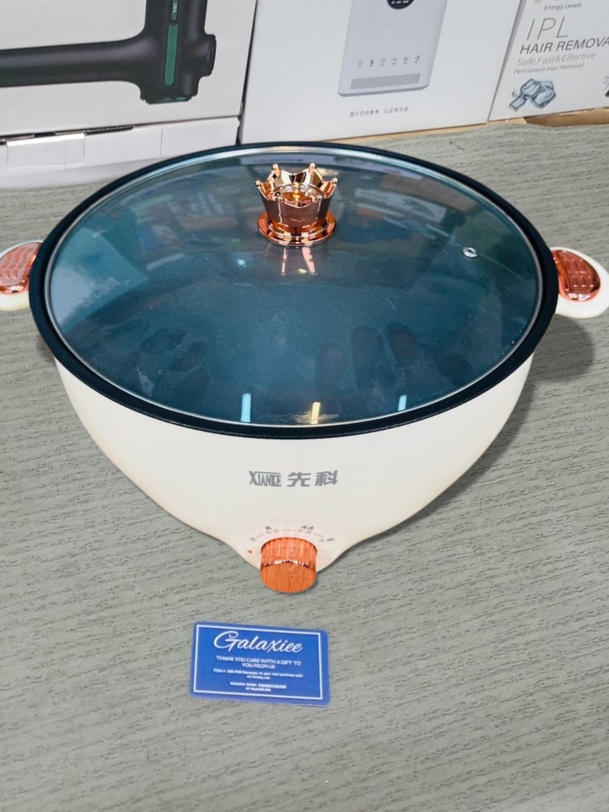 XIANKE 32cm Multi-Functional Electric Cooking Pot – 3-Tier Food Steamer with Crown Lid & Adjustable Heat